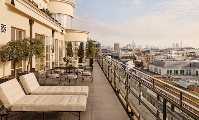 Artfully designed by Pierre-Yves Rochon, The Mayfair Pavilion Suite is flooded with light from the signature glass-walled turret and three private terraces. Classic detailing, a calming palette of creams and gold accents create a refined, contemporary space for relaxing and entertaining.